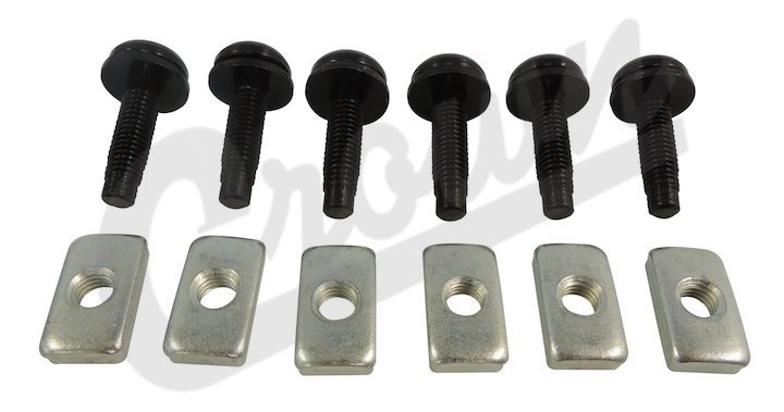 - Jeep Wrangler (TJ) (1997-2006) without Unlimited Package; with Hard Top; Includes 6 Nuts and 6 Screws w/ Washers; Screw: M8-1.25 x 29mm.